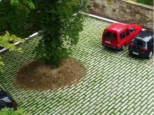 利于更換及修補(bǔ)的防滑鋪裝材料,以及它的透水性,加上鋪設(shè)尺寸符合人體工程學(xué),真是人性、環(huán)保、安全而美觀。而停車場(chǎng)周圍的綠植,起到降溫作用,視覺上也美化了場(chǎng)景,愉悅內(nèi)心,安全出行,再好不過。