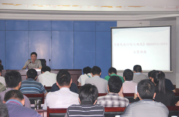 市規(guī)劃院院長賀玉龍傳達(dá)了“省《規(guī)范》GB50016-2014宣貫培訓(xùn)”精神,并與參加省宣貫培訓(xùn)的胡自立、崔睿、李文成、沈光紅、陳潔、密齊峰六位同志一起,分別從規(guī)劃選址、平面布局、規(guī)劃和建筑工程設(shè)計(jì)等側(cè)重點(diǎn),就新老規(guī)范的變化、新規(guī)范中的總則、術(shù)語和符號、廠房和倉庫、甲乙丙類液體及氣體儲罐(區(qū))和可燃材料堆場、民用建筑、建筑構(gòu)造、滅火救援設(shè)施、消防設(shè)施、電氣、供暖通風(fēng)和空氣調(diào)節(jié)等方面的重點(diǎn)內(nèi)容,向與會人員進(jìn)行了傳達(dá)和講解。