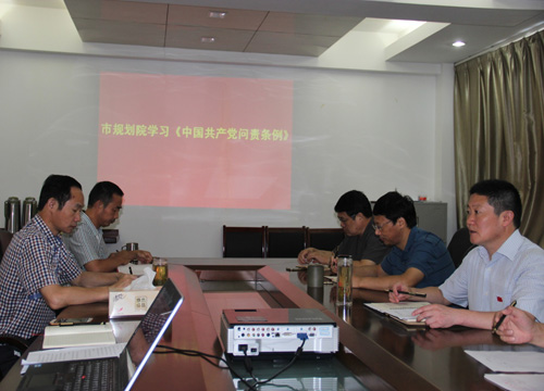 2016年9月1日上午,市規(guī)劃設(shè)計(jì)院召開全院干部大會(huì),組織學(xué)習(xí)《中國(guó)共產(chǎn)黨問(wèn)責(zé)條例》。會(huì)議由院黨支部書記、院長(zhǎng)賀玉龍同志主持,院班子及全體室(隊(duì))干部參加了會(huì)議。