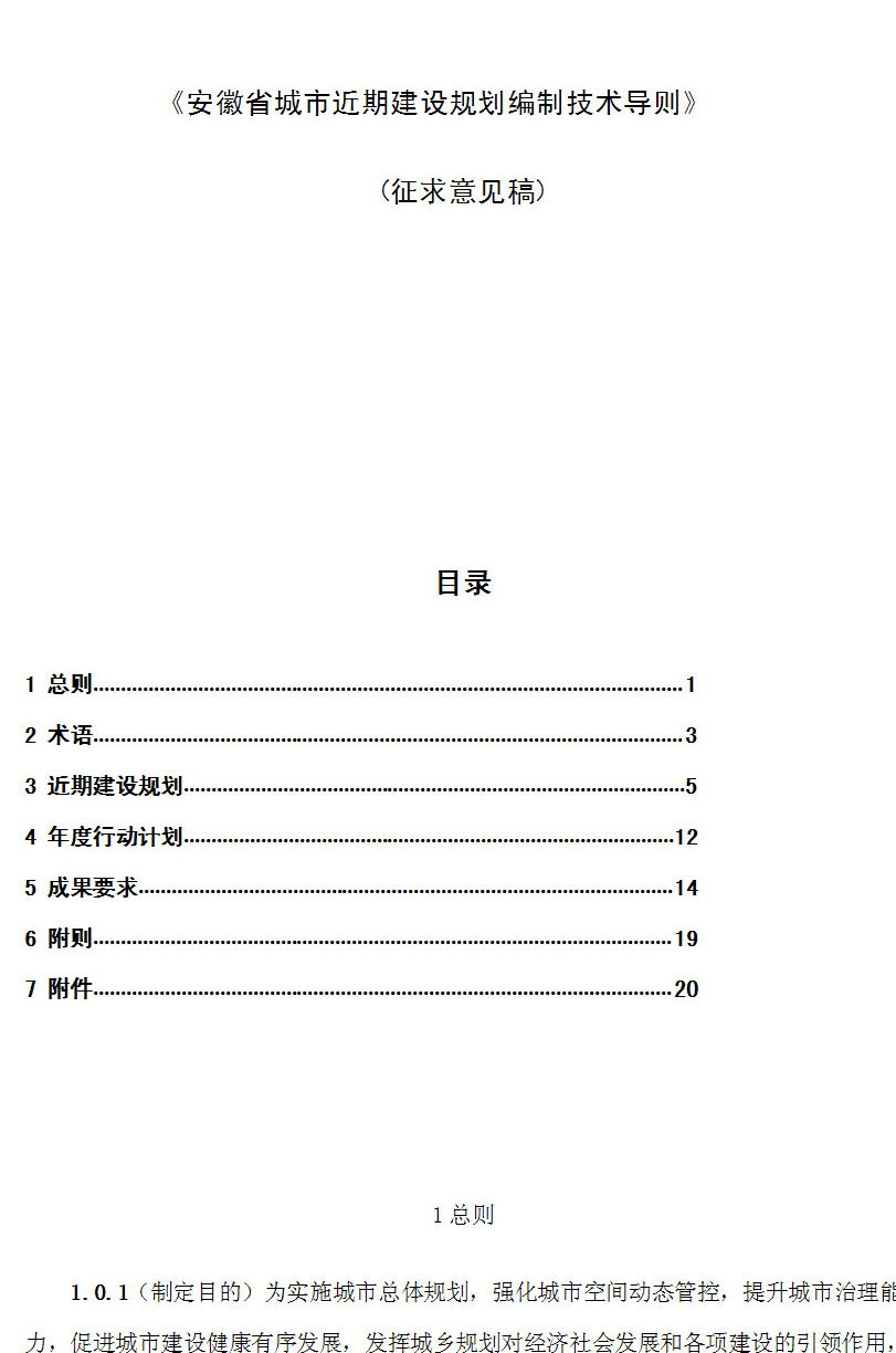 《安徽省城市近期建設(shè)規(guī)劃編制技術(shù)導(dǎo)則》