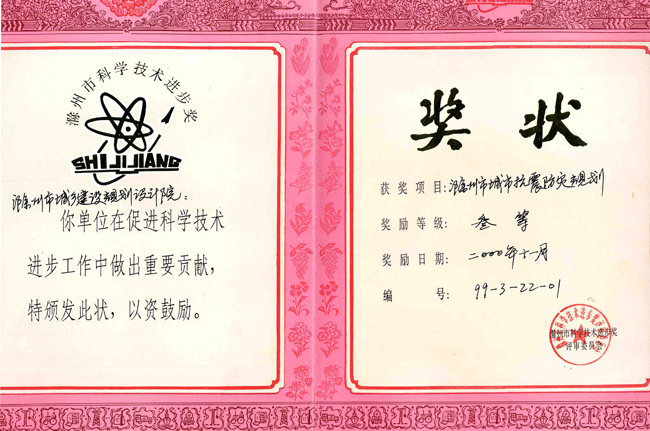 滁州市抗震防災(zāi)規(guī)劃(科技進步三等獎).